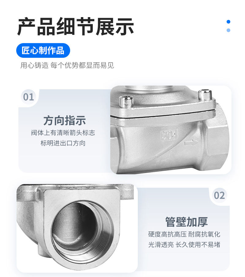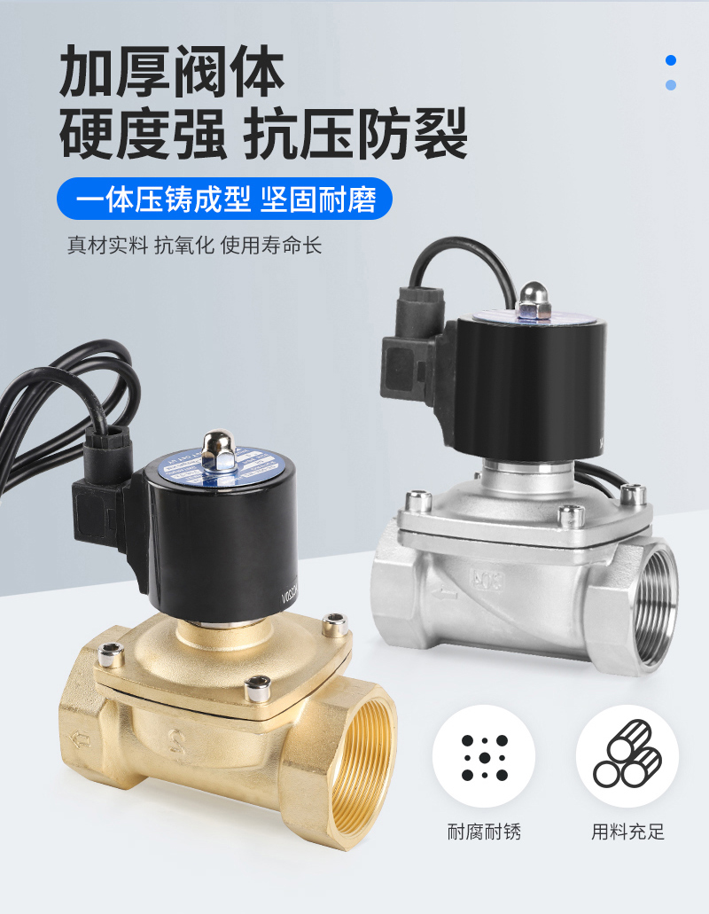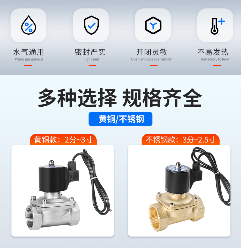 产品名称常闭型防水电磁阀使用方式直动式阀体材质黄铜/不锈钢可用范围无杂质液体/气体/油线圈材质铜芯线圈温度范围-5~80℃/150℃压力范围0~1.0Mpa工作电压AC220V/DC24V