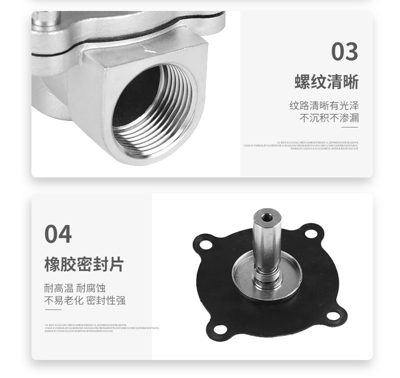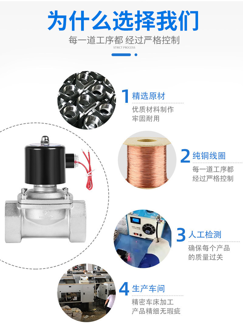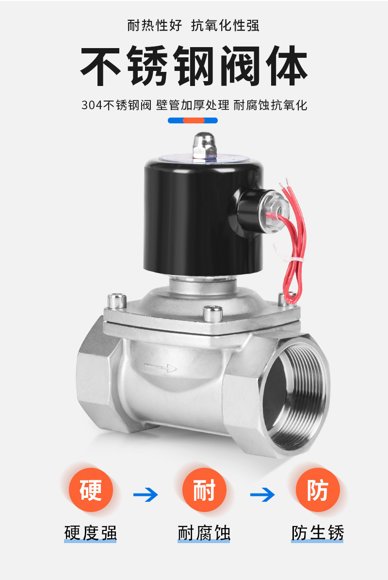 产品名称常闭不锈钢电磁阀压力范围0~1Mpa产品材质不锈钢使用方式常闭工作电压AC220V/DC24V/DC12V线圈材质铜芯材质温度范围-5~80/150℃质保阀体一年(非人为损坏)