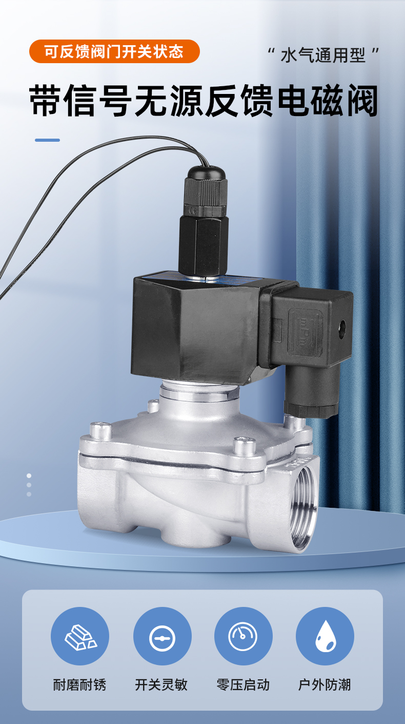 产品名称带反馈电磁阀工作电压AC220V/DC24V阀体材质不锈钢/黄铜流体温度-5~80/150℃线圈材质铜芯线圈使用方法常闭压力范围0~0.1Mpa/0.2~1.6Mpa质保期限阀体质保一年配件三个月(非人为损坏)