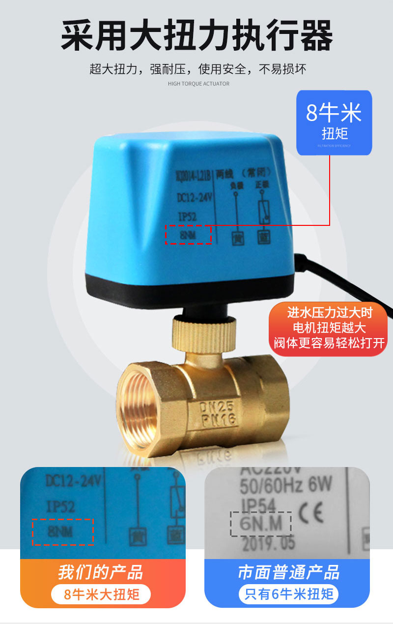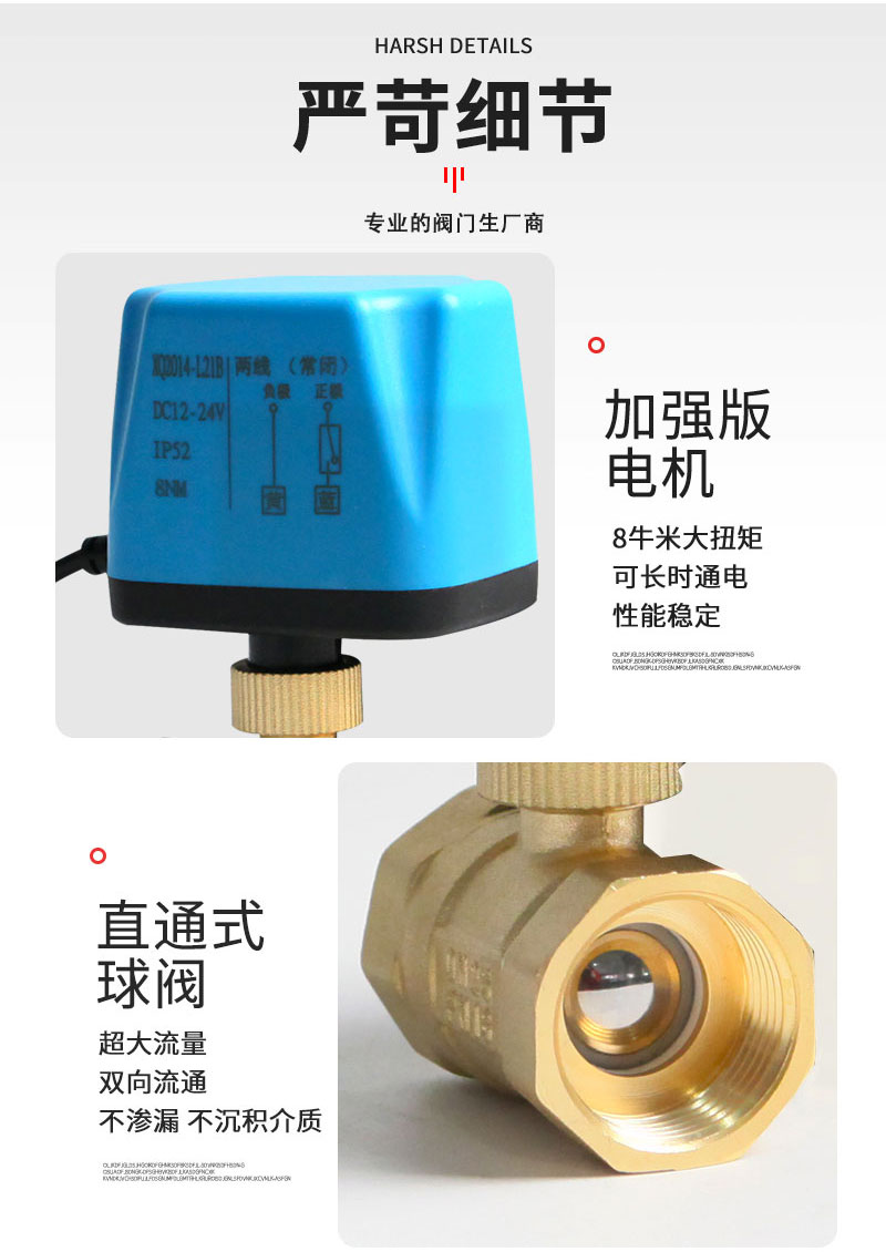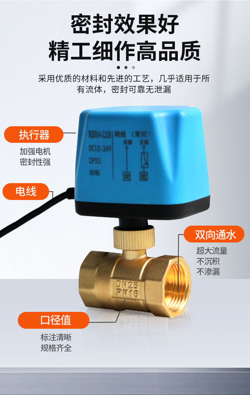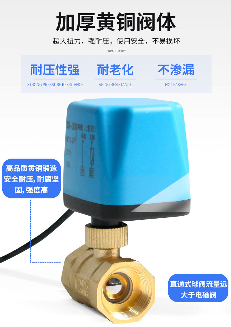 产品名称两线二通电动球阀品牌名称悦尔驱动电源AC220V/AC110V/AC24V/DC5V/DC12V/DC24V电机类别同步电机阀体材质黄铜允许工作压差≤0.4Mpa阀门承压0.6Mpa介质温度-5~80℃连接方式螺纹