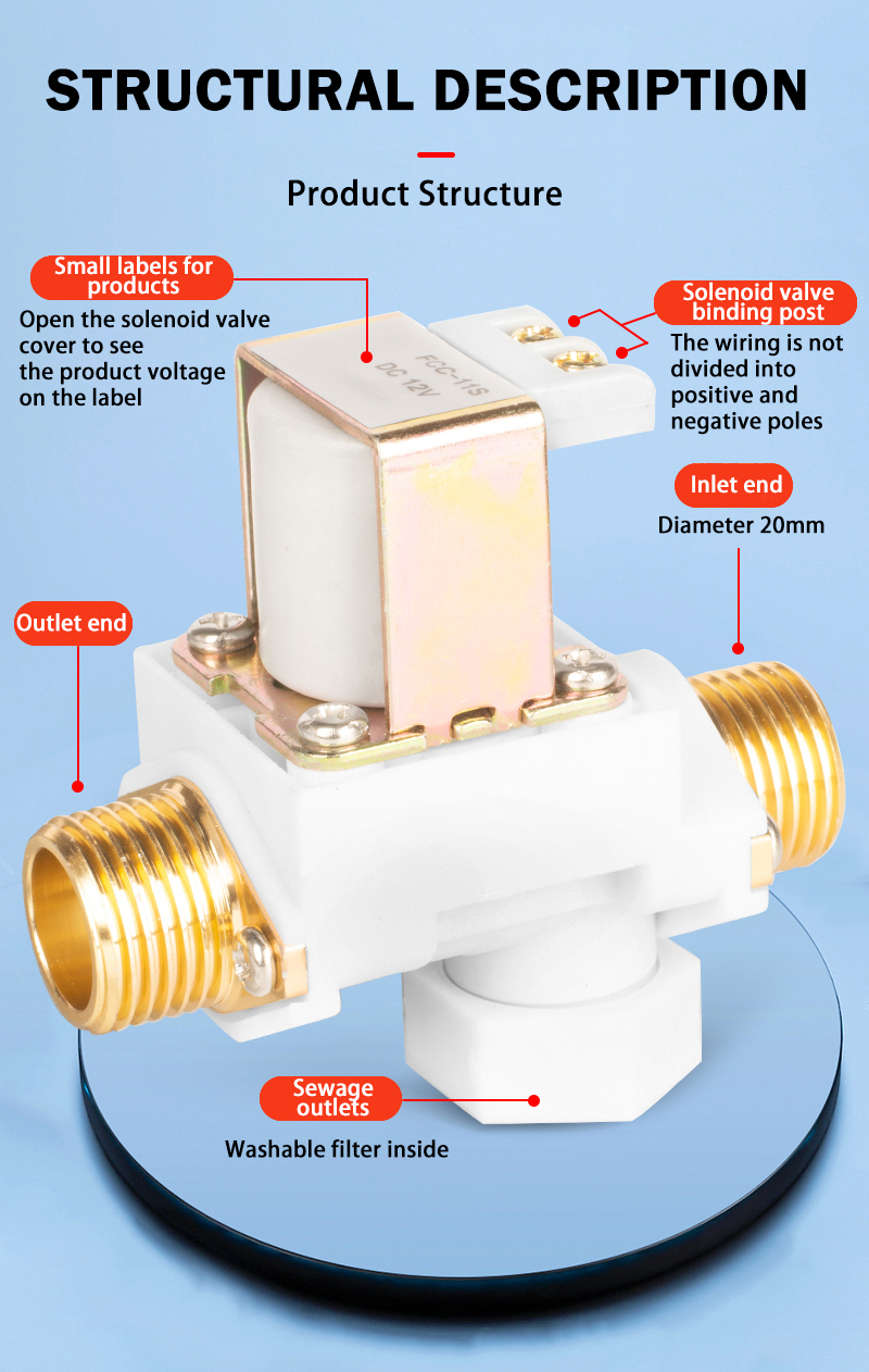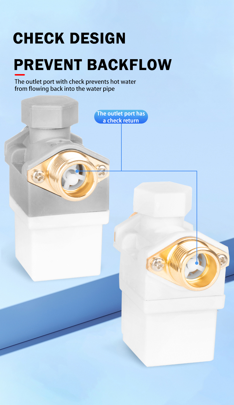 This solar solenoid valve has two types of pressure and non-pressure, the temperature resistance is 100°C, suitable for tap water, the solenoid valve comes with a filter screen that can be removed for easy cleaning, and has a check function to prevent backflow