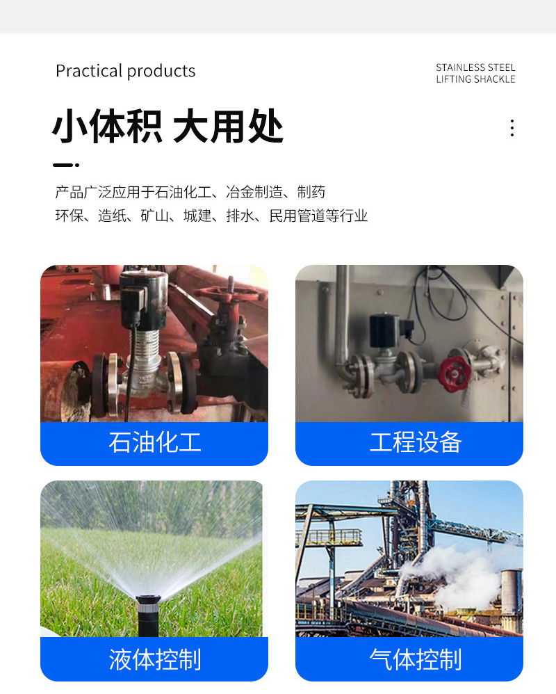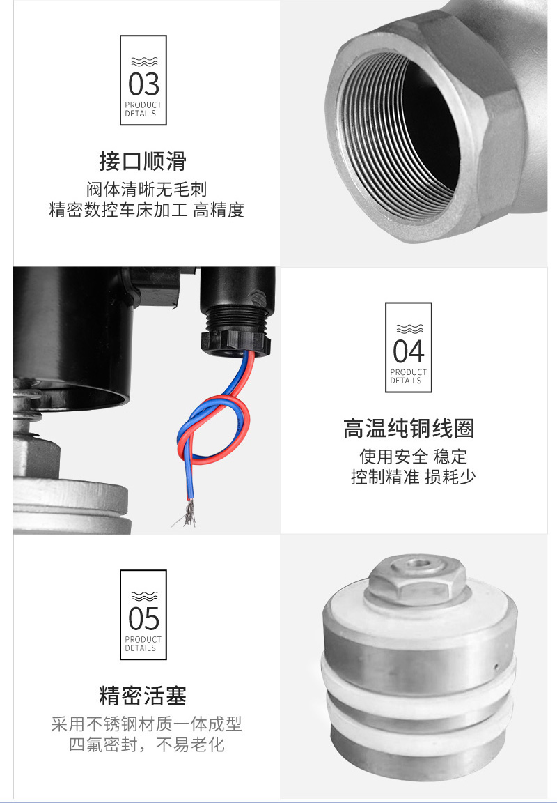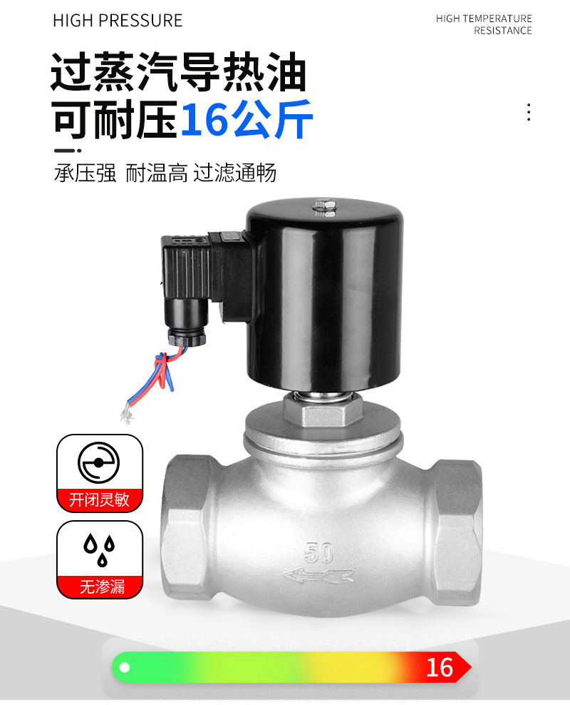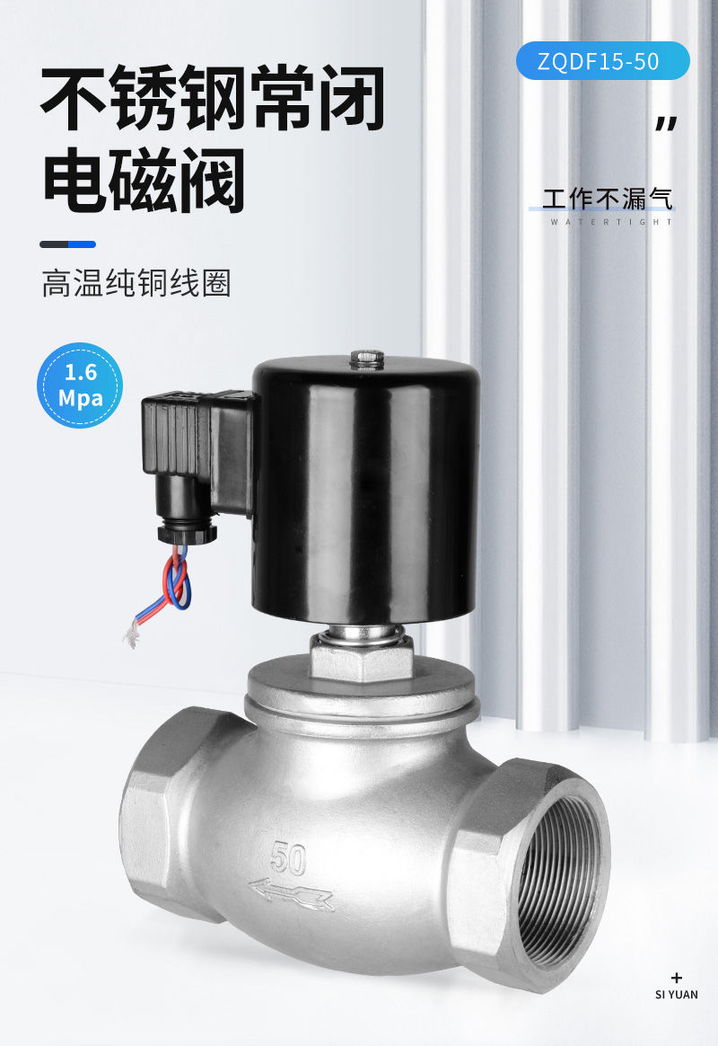 产品名称不锈钢常闭电磁阀动作方式先导式使用压力0.2~1.6Mpa工作寿命>15万次使用电压AC220V/DC24V/DC12V功率AC≤70VA工作温度-5~180℃介质蒸汽,热油,干净流体
