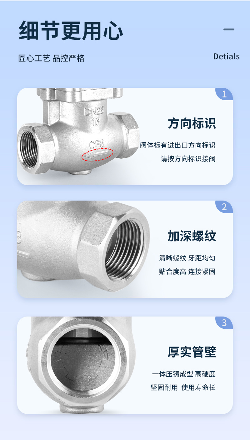| 阀体材质 | 304不锈钢 | 质保期限 | 电磁阀阀体质保一年,配件三个月(非人为损坏) |