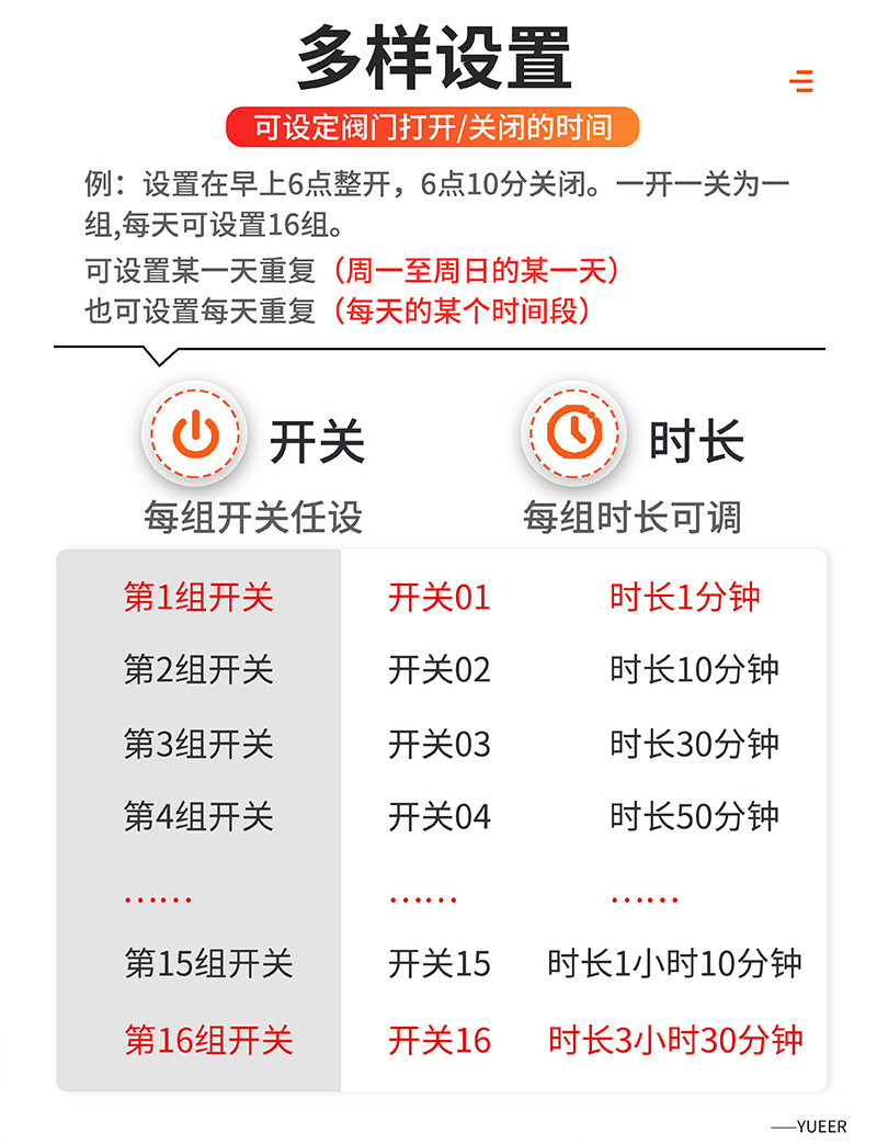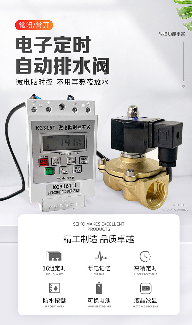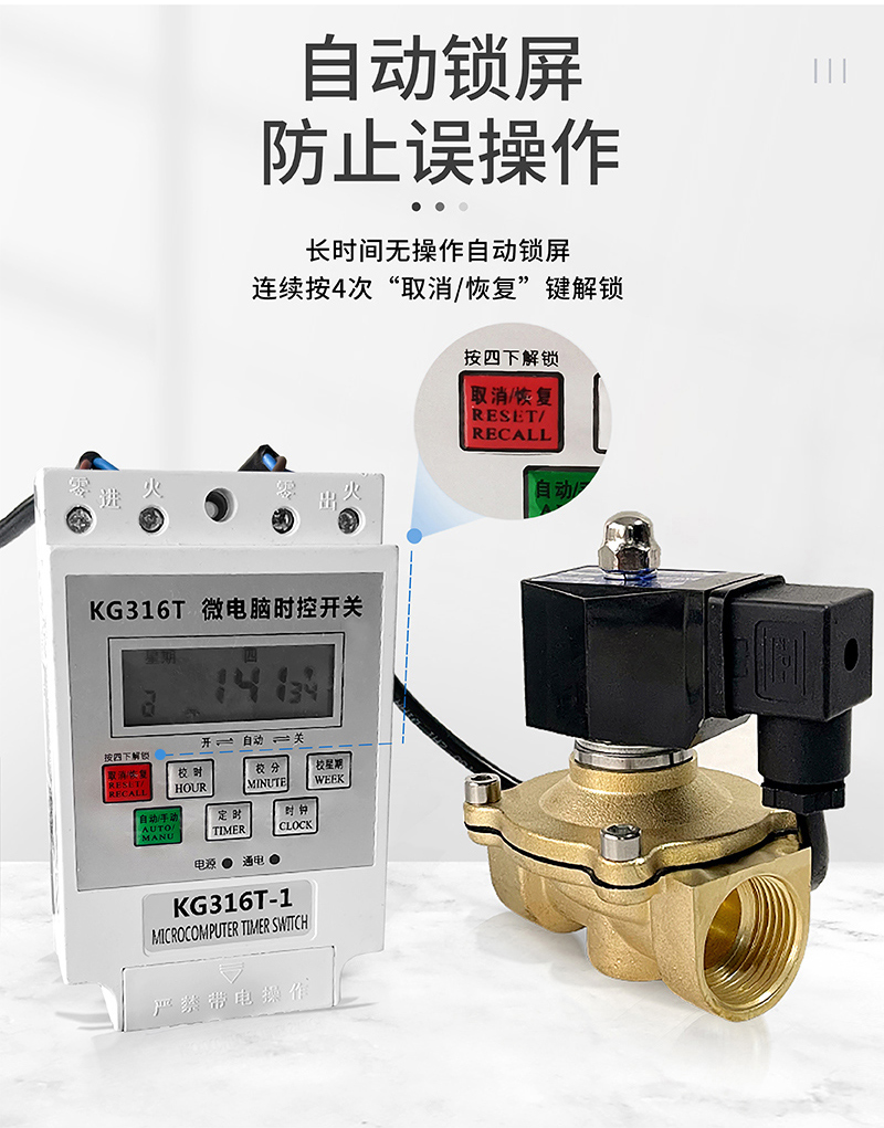 产品名称多组定时防水电磁阀工作电压AC220V使用方式直动式定时器外壳材质ABS品牌悦尔压力范围0~1Mpa质保一年控制功率≤1000w阀体材质锻压黄铜温度范围-5℃~80℃定时器额度电流10A开孔尺寸122*75*50(mm)线圈材质铜芯线圈可用范围液体、气体定时器额度电压AC220V时空范围1分钟~168小时