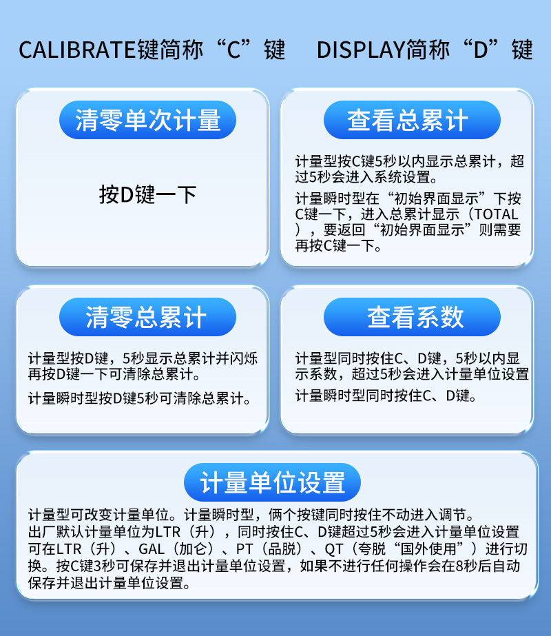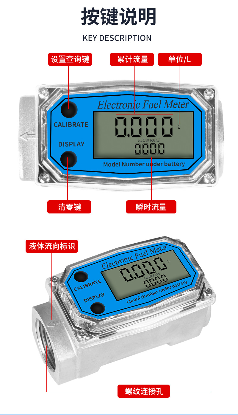 | 产品材质 | 不锈钢、铝合金 | 计量精度 | ±1% | 累计计量范围 | 29999999 |