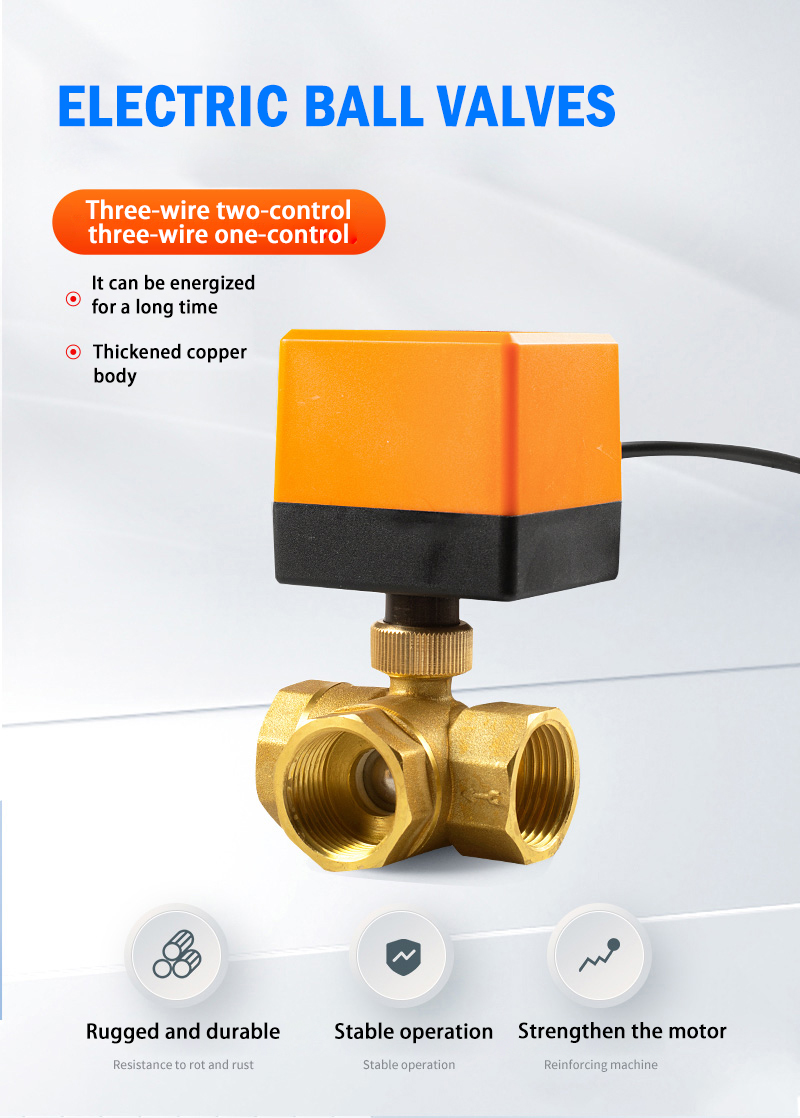 | Name | Three-wire two-control three-way electric ball valve | Voltage | AC220V / AC110V / DC24V / DC12V / Special voltage | Protect level | IP53/63 | |