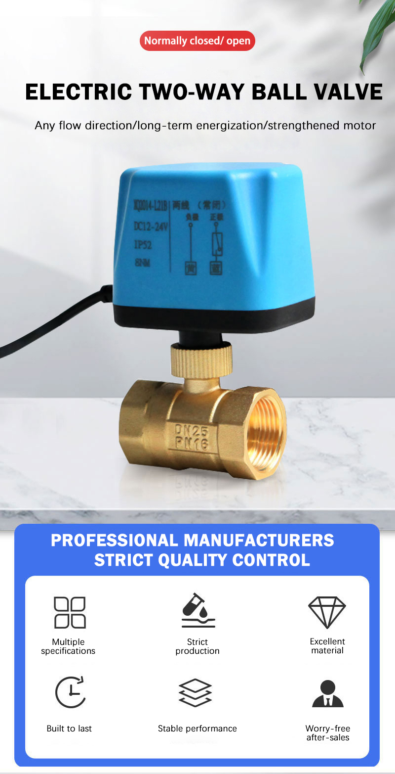 | Name | Two-wires electric ball valve | Voltage | AC220V / AC110V / DC24V / DC12V / Special voltage | Protect level | IP52 | |