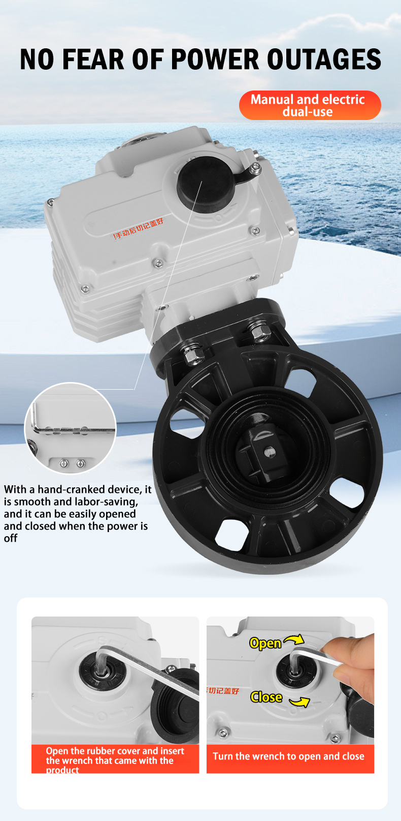 | Product name | Manual automatic UPVC electric butterfly valve | Stressful environment | atmospheric pressure | |