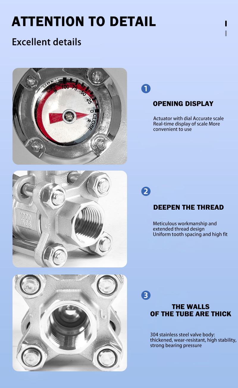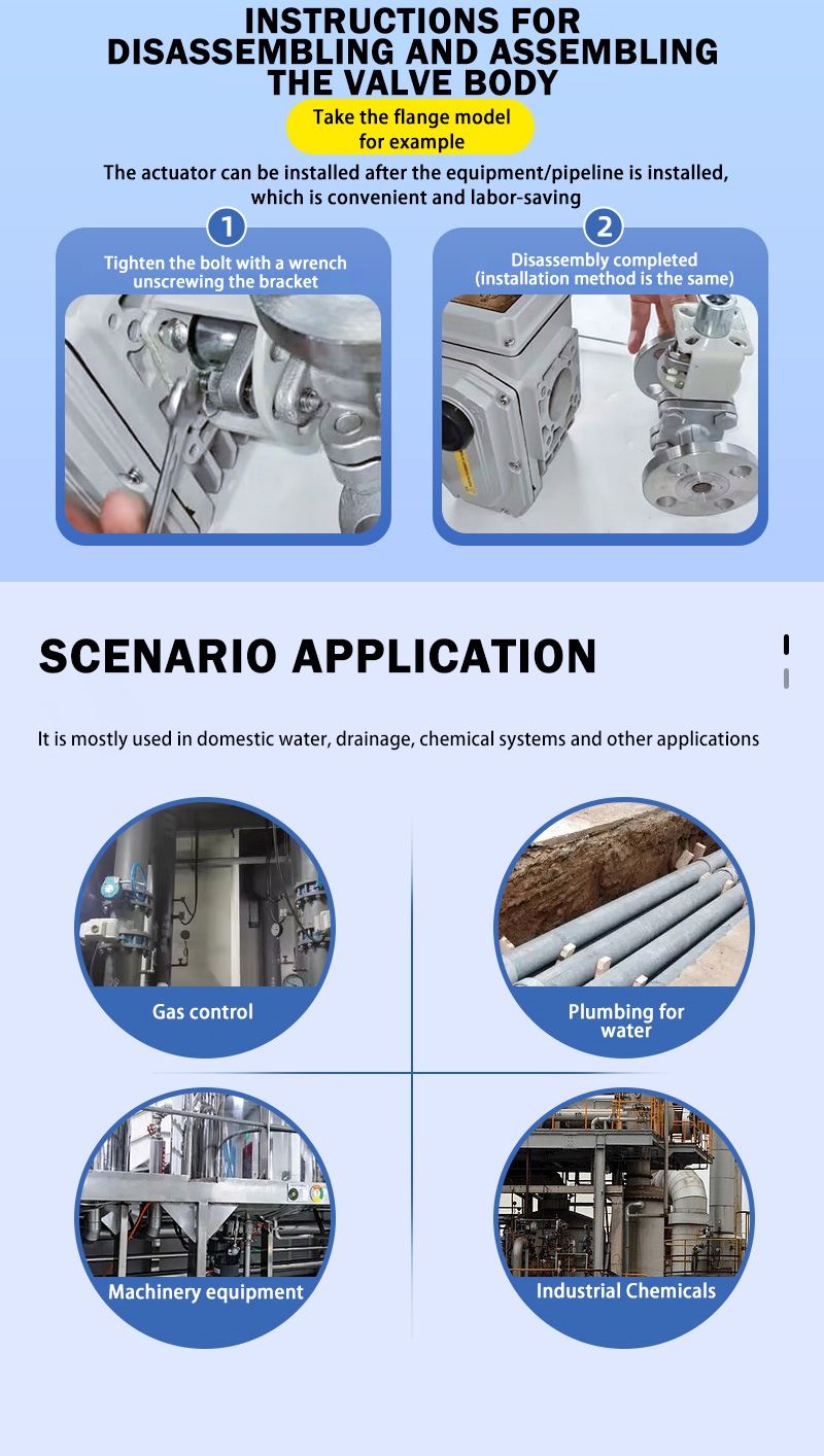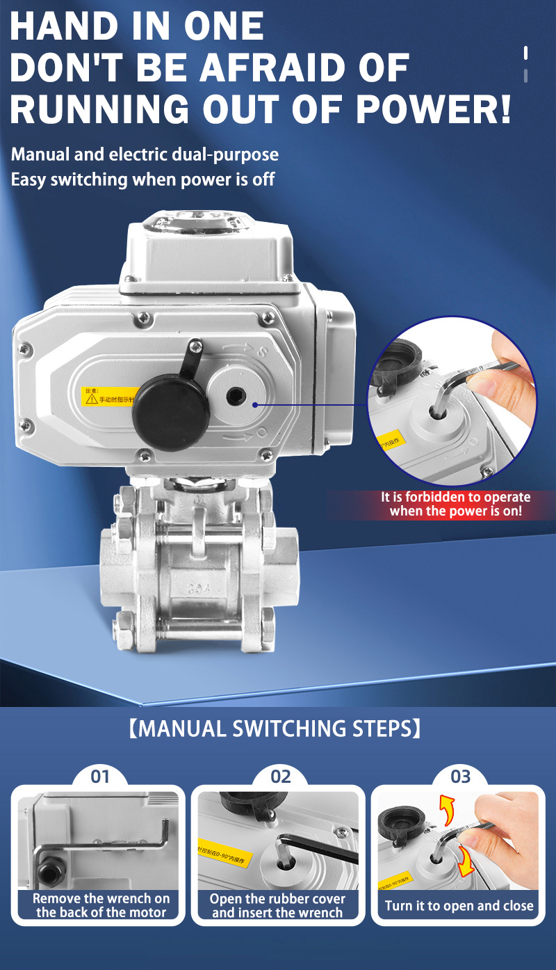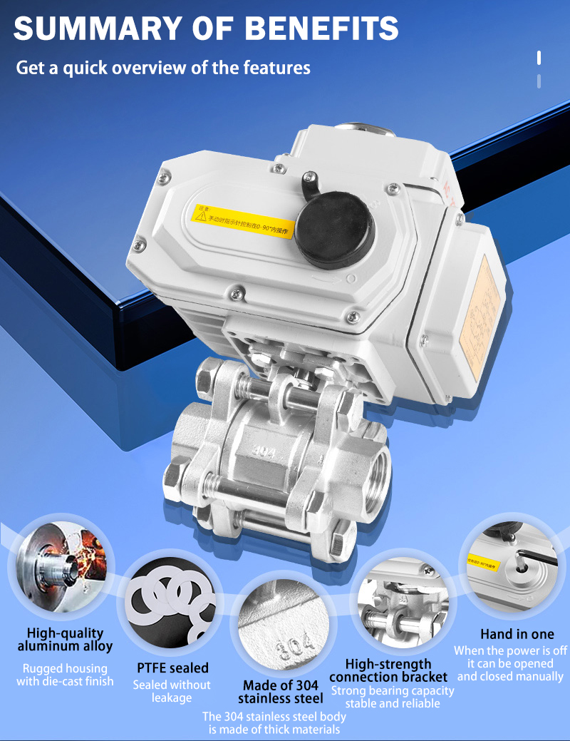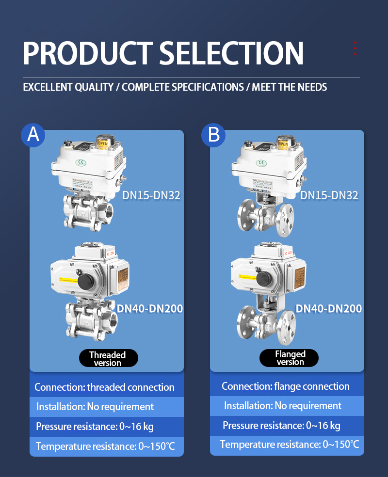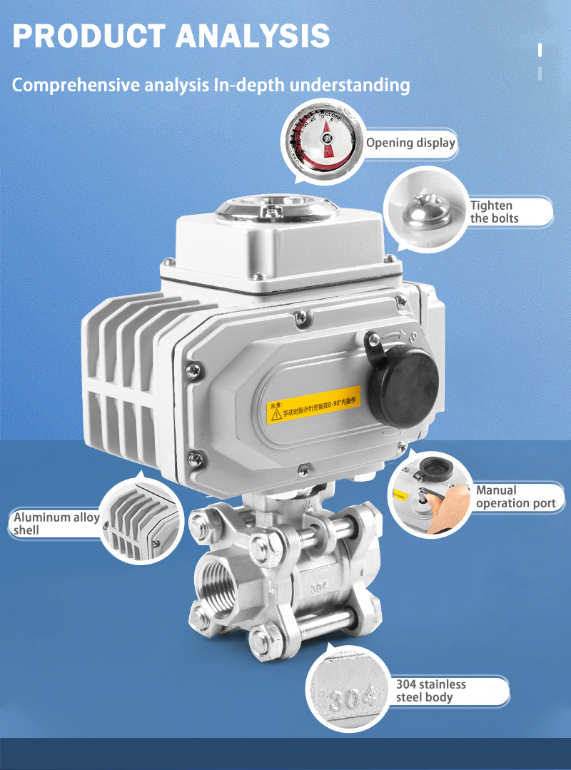 | Name | 304 stainless steel electric ball valvee | Voltage | AC220V/DC24V | Protect level | IP53 | |