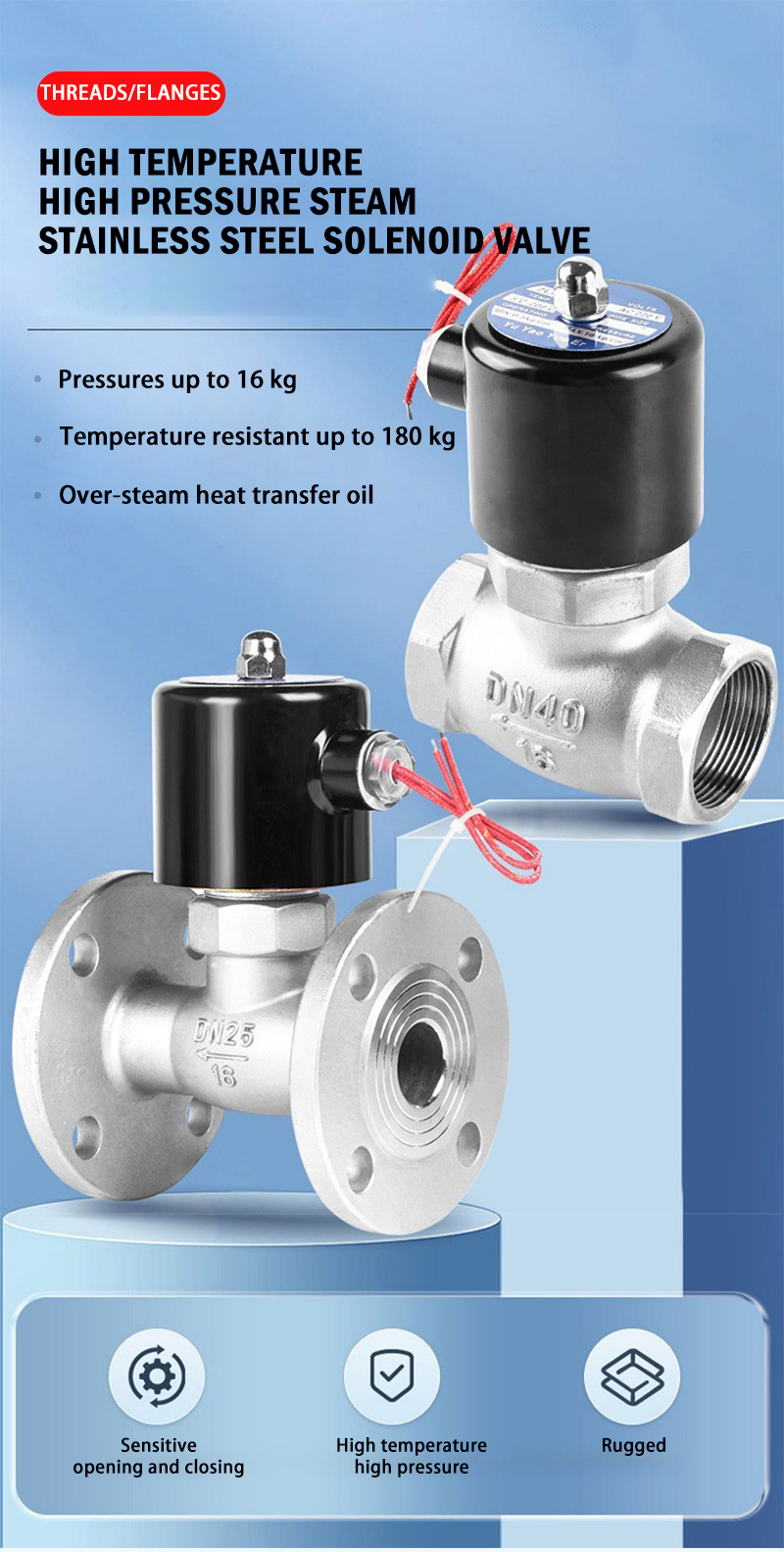 | Size | DN15 DN20 DN25 DN32 DN40 DN50 | Thread type | BSPP(G) / NPT | Waterproof level | IP54 | ||||