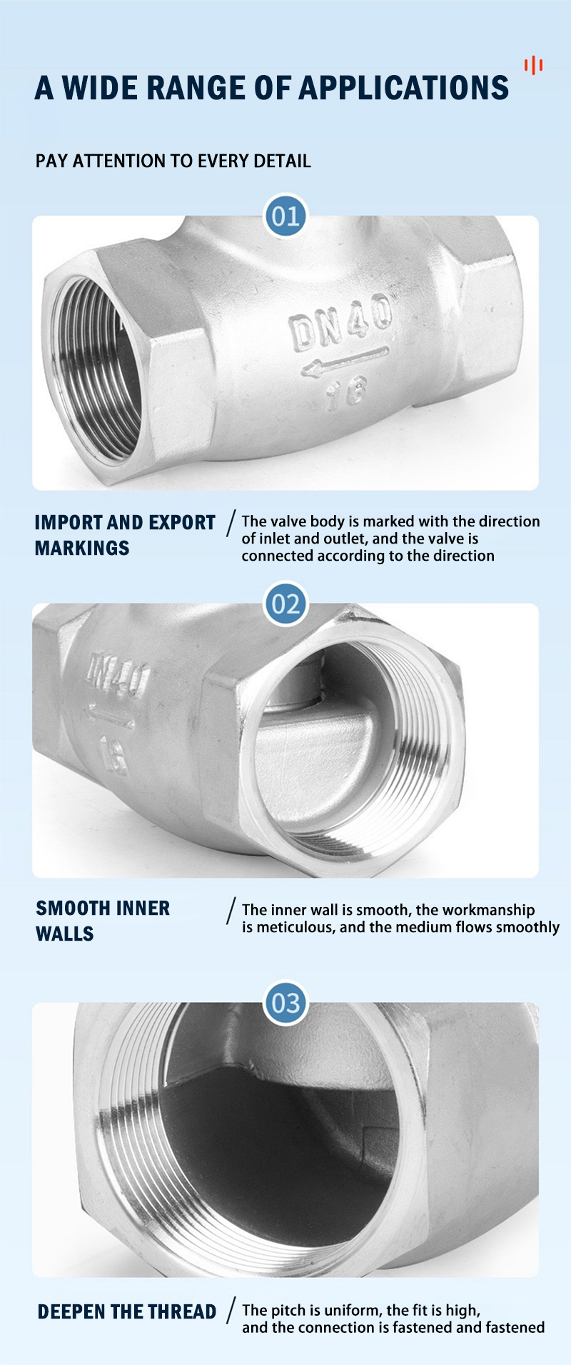 | Body material | Stainless Steel | Connection | Female Thread /Flange | Temperature of Media | Normal Temperature | ||||